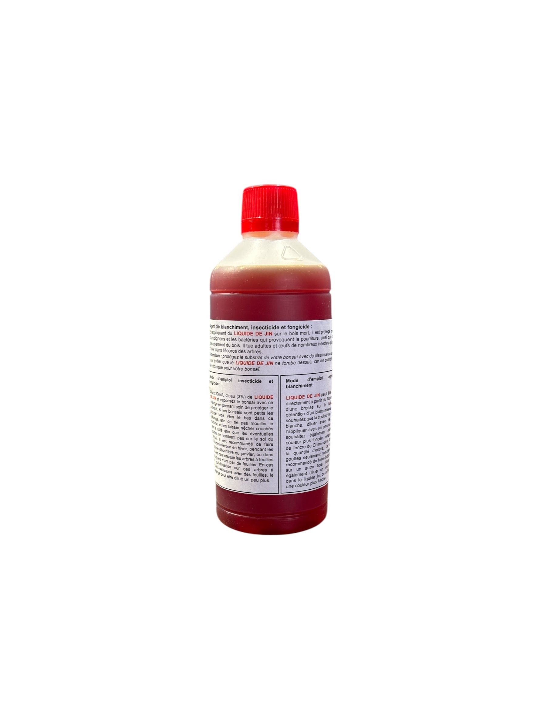 Le liquide à Jin peut également être utilisé comme insecticide et fongicide. Pour cela, diluer le produit de 3 % par litre d'eau puis pulvériser sur les branches et le tronc en protégeant le substrat pendant cette opération. A faire de préférence en hiver.