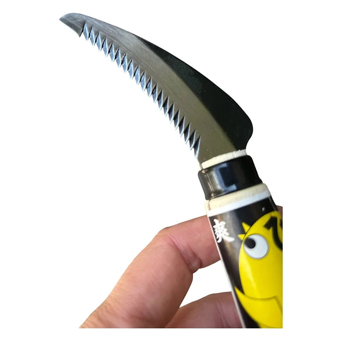 Lame bien affûtée avec des dents permettant aussi de couper de grosses racines.