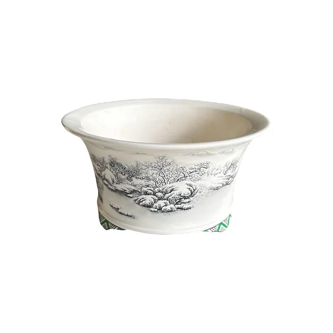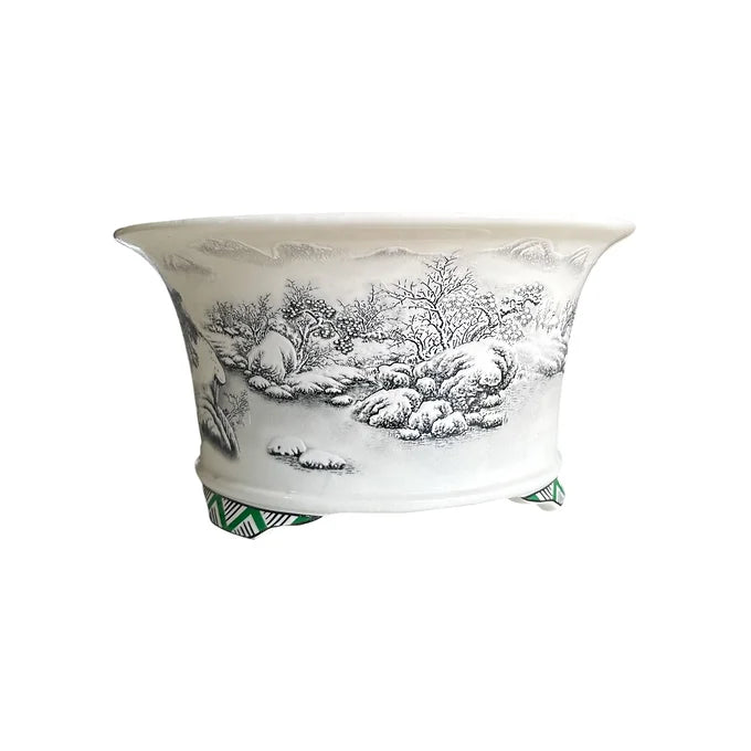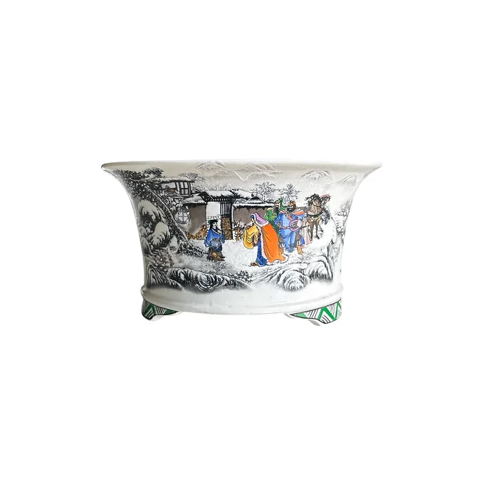 Pot bonsaï émaillé représentant une scène très connue en Chine: l'histoire des Trois Visites à la Chaumière.