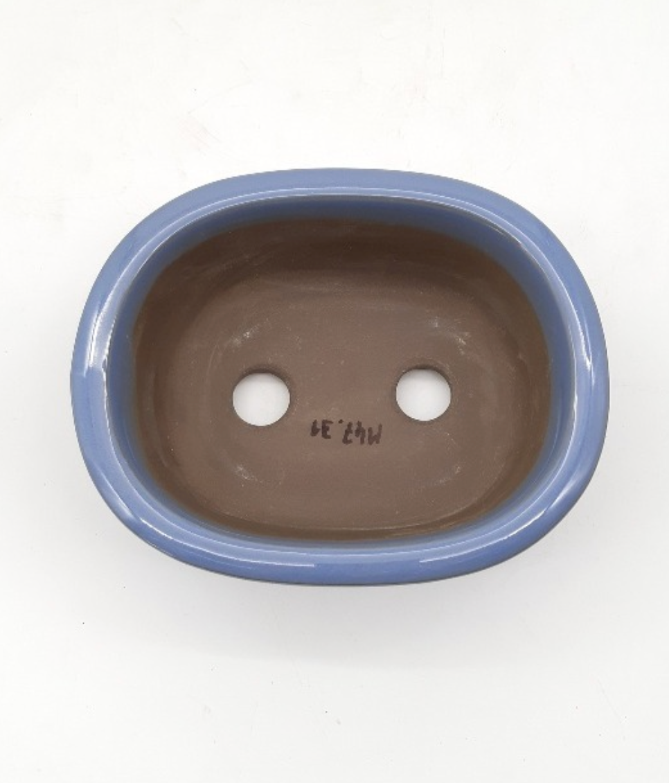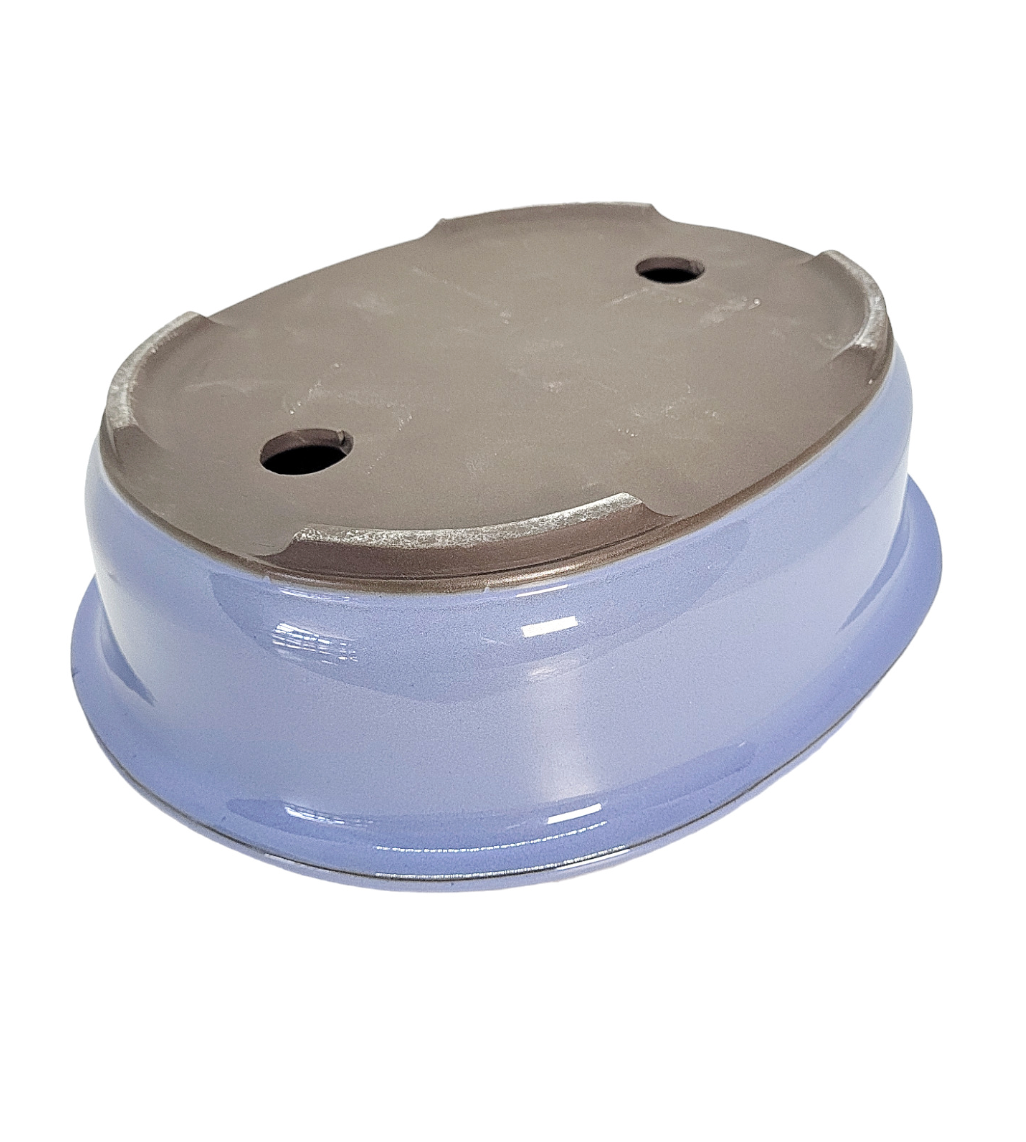 Pot ovale pour bonsaï émaillé - Bleu