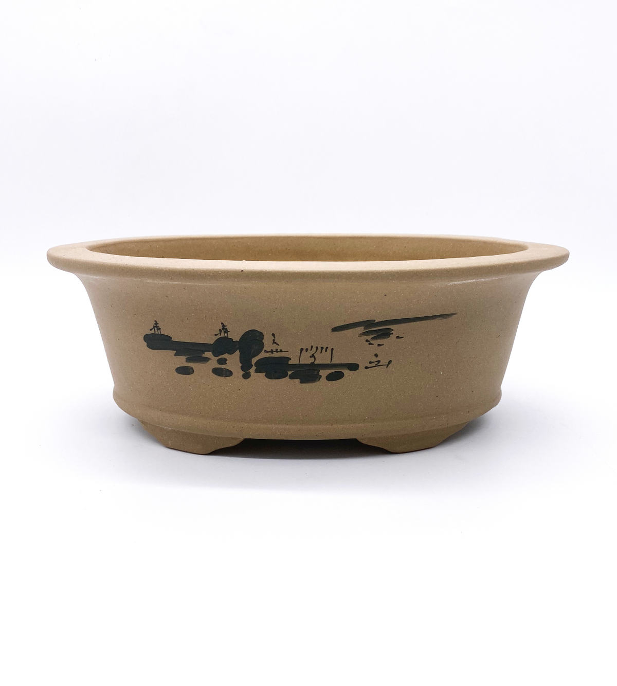 Poterie chinoise de Yixing avec un paysage dessiné sur une seule face.