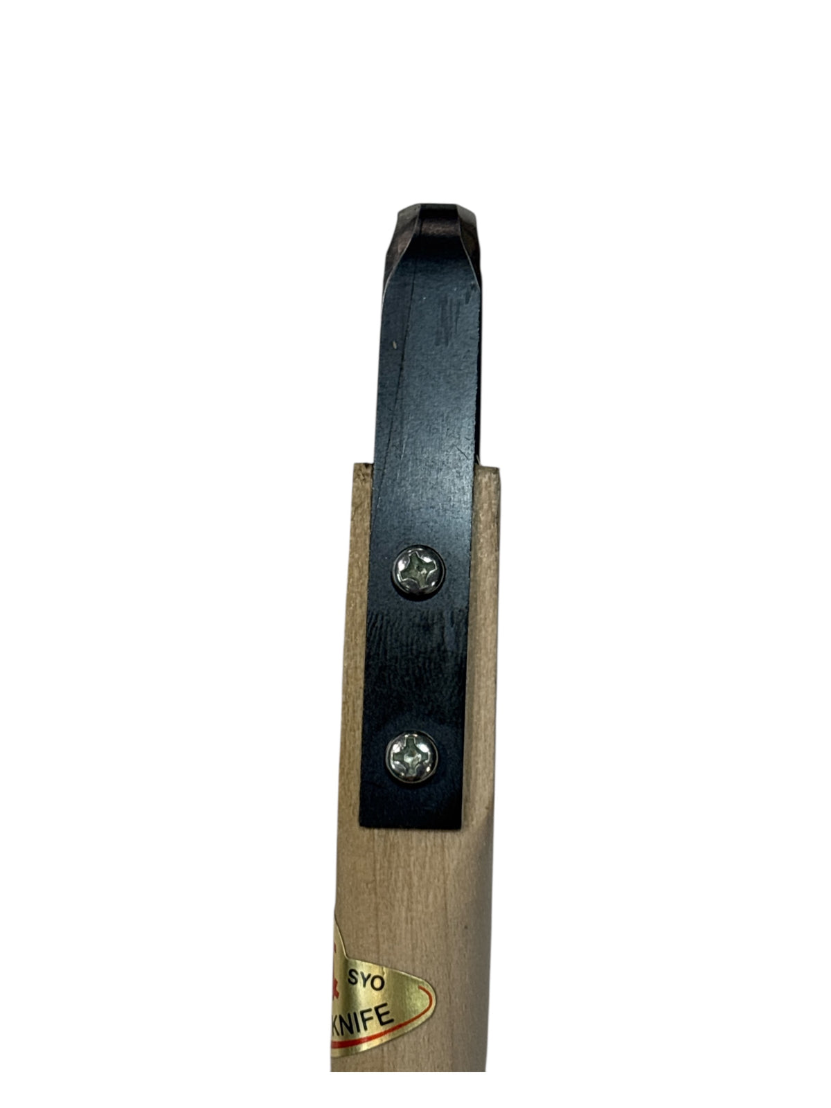 Couteau à écorcer Kaneshin. Manche en bois avec lame fixée par 4 vis.