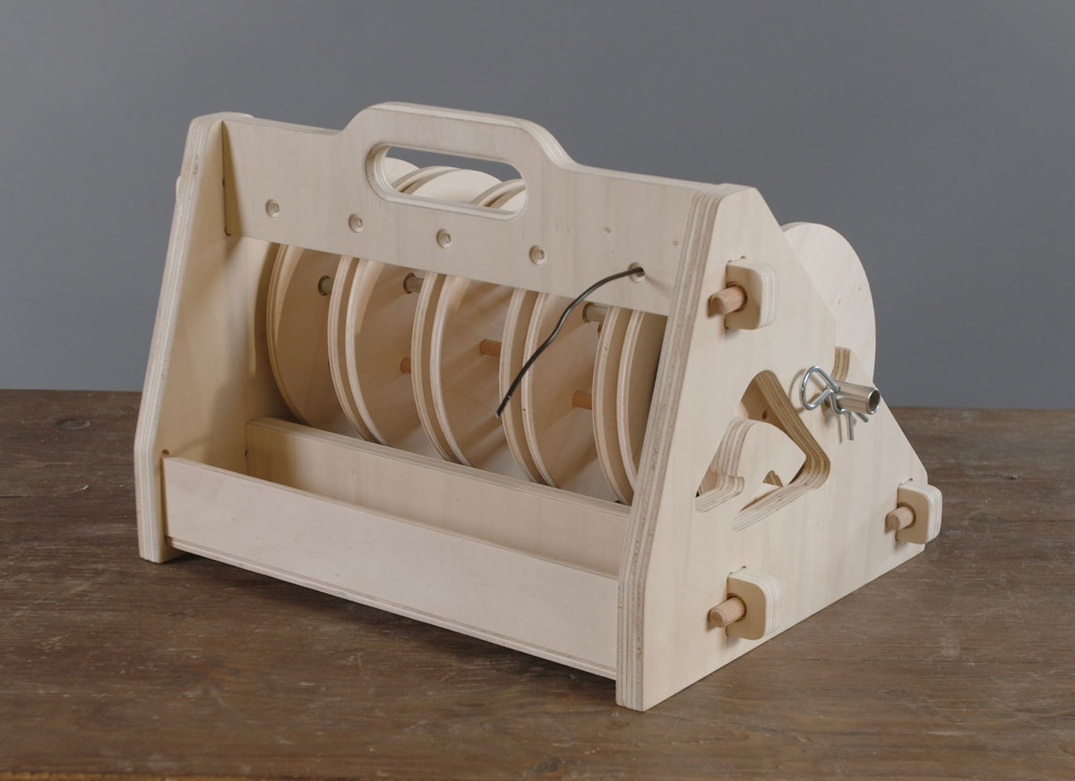 Le distributeur dispose de 5 roues à bobines (caddie), permettant d’installer jusqu’à 5 fils de ligature en aluminium, jusqu’à 4 mm de diamètre. Chaque roue est compatible avec deux diamètres de bobines, ce qui le rend adaptable à tous les formats du marché. Son système de montage ingénieux permet de changer une bobine en moins d’une minute avec une simple clé Allen.