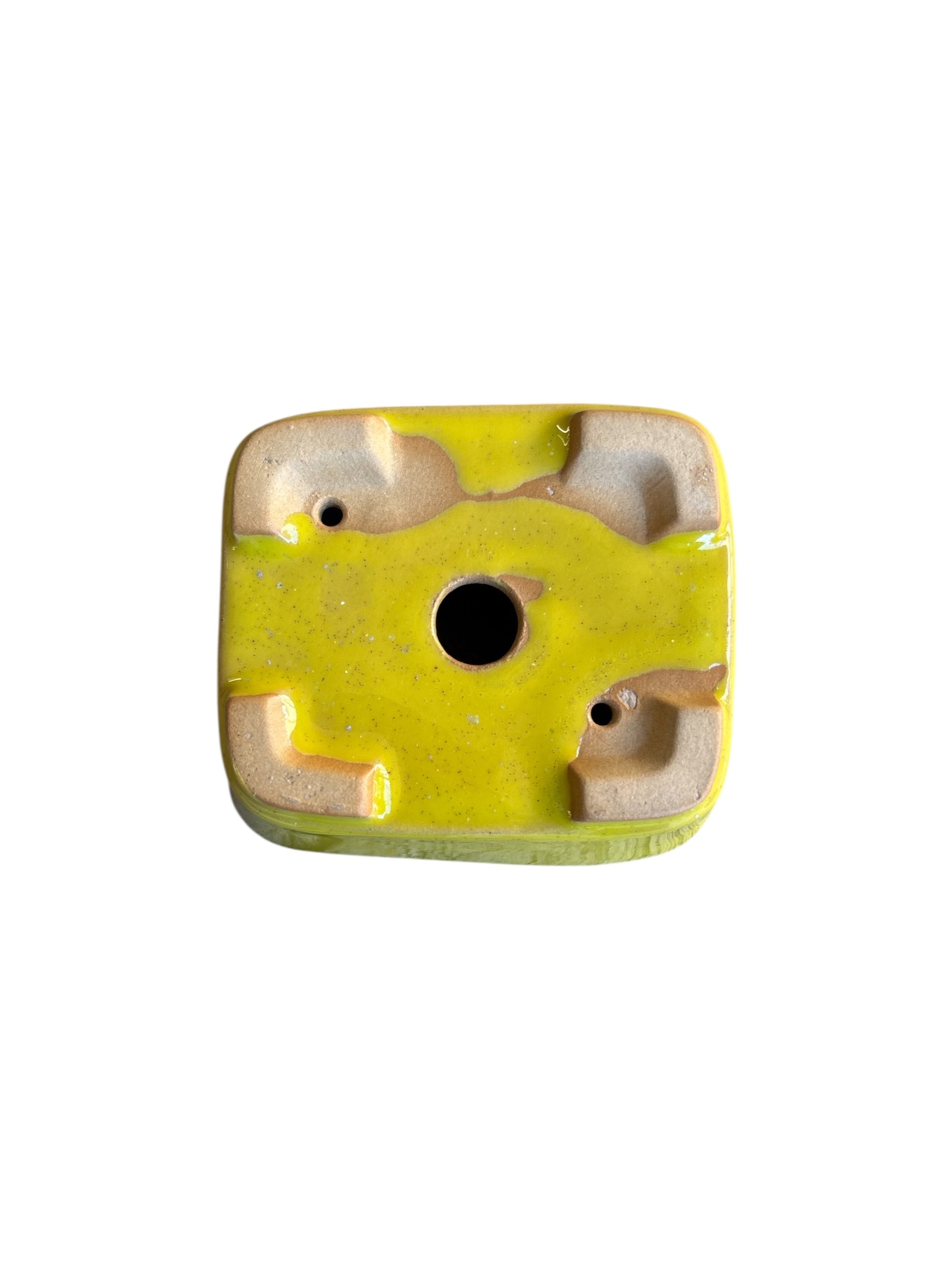 Pot rectangulaire pour bonsaï émaillé de couleur jaune.
