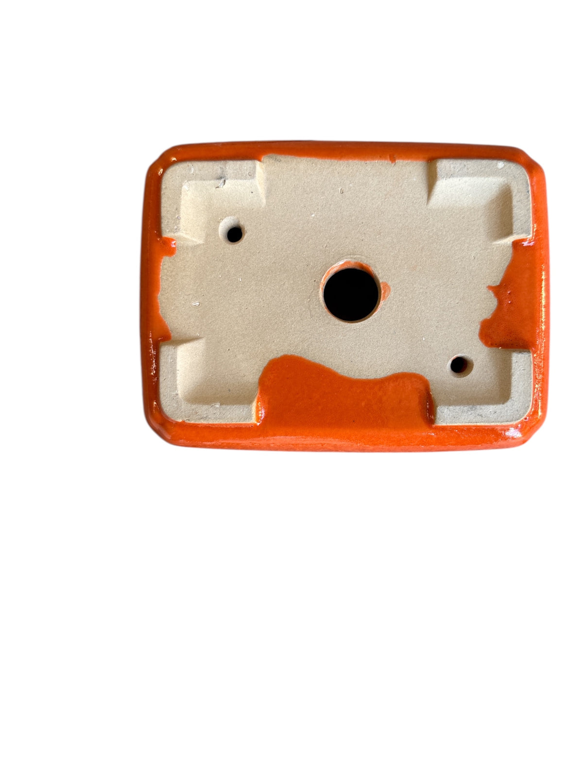 Pot rectangulaire pour bonsaï émaillé de couleur orange.