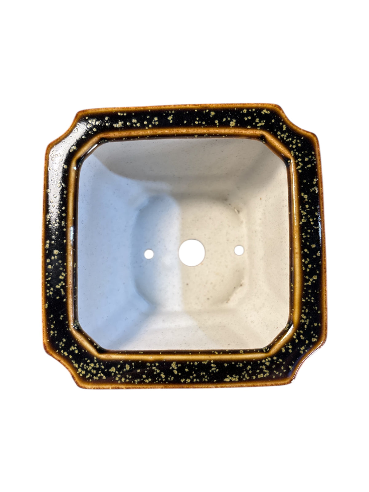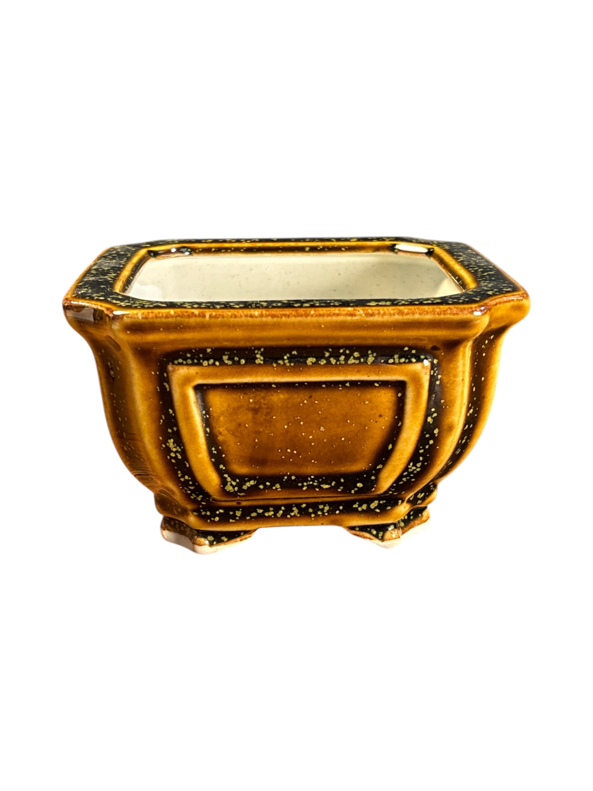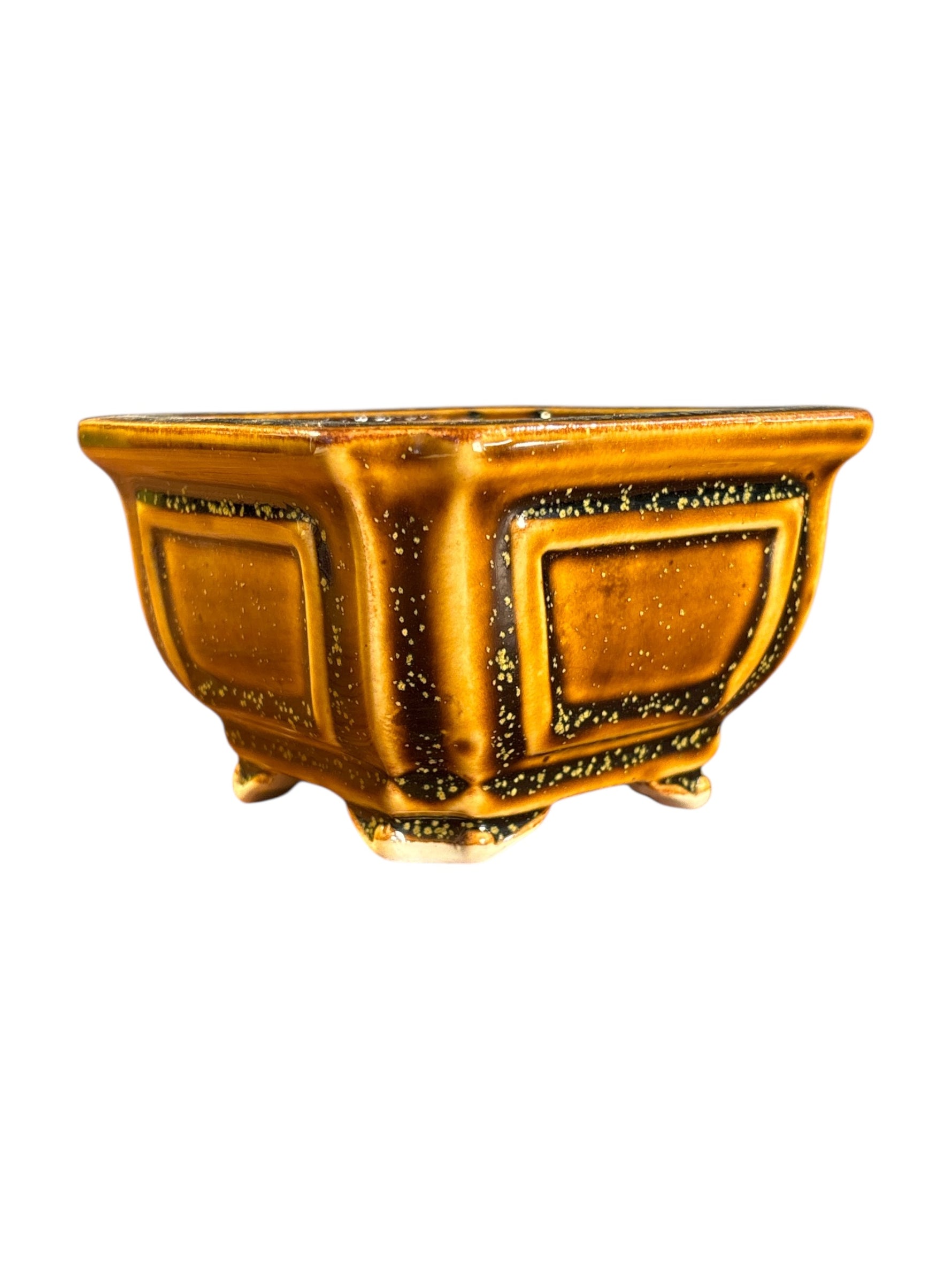 Pot carré pour bonsaï émaillé, couleur vieux jaune.
