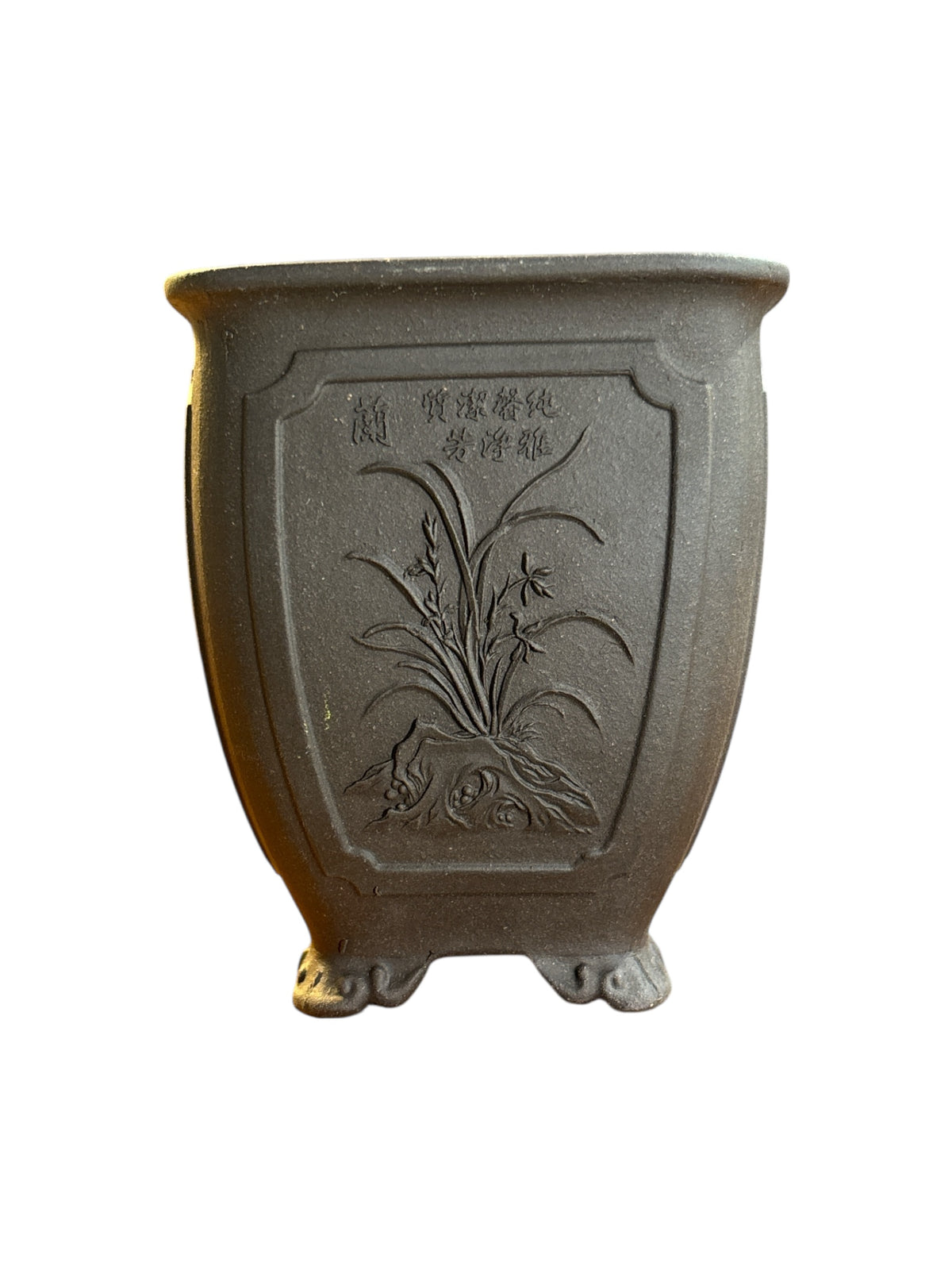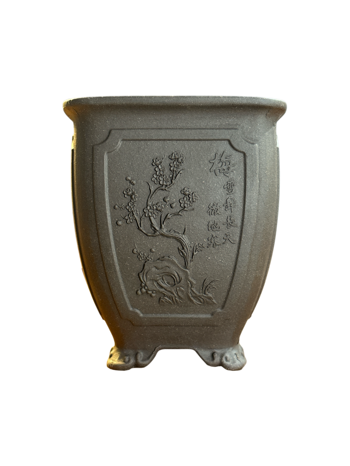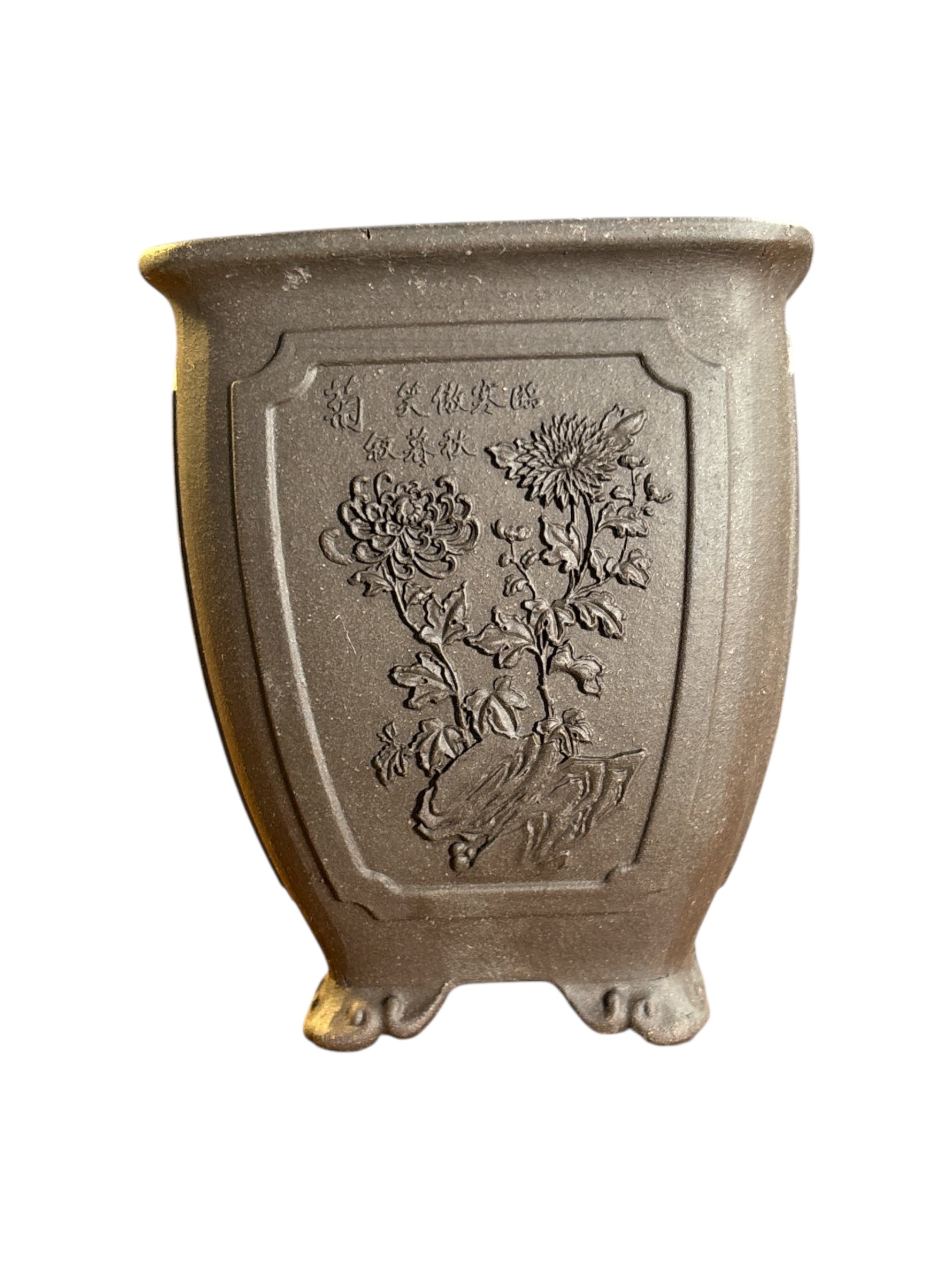 Motifs floraux en relief, différents sur les 4 faces.