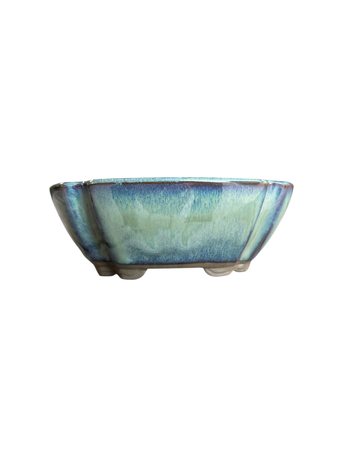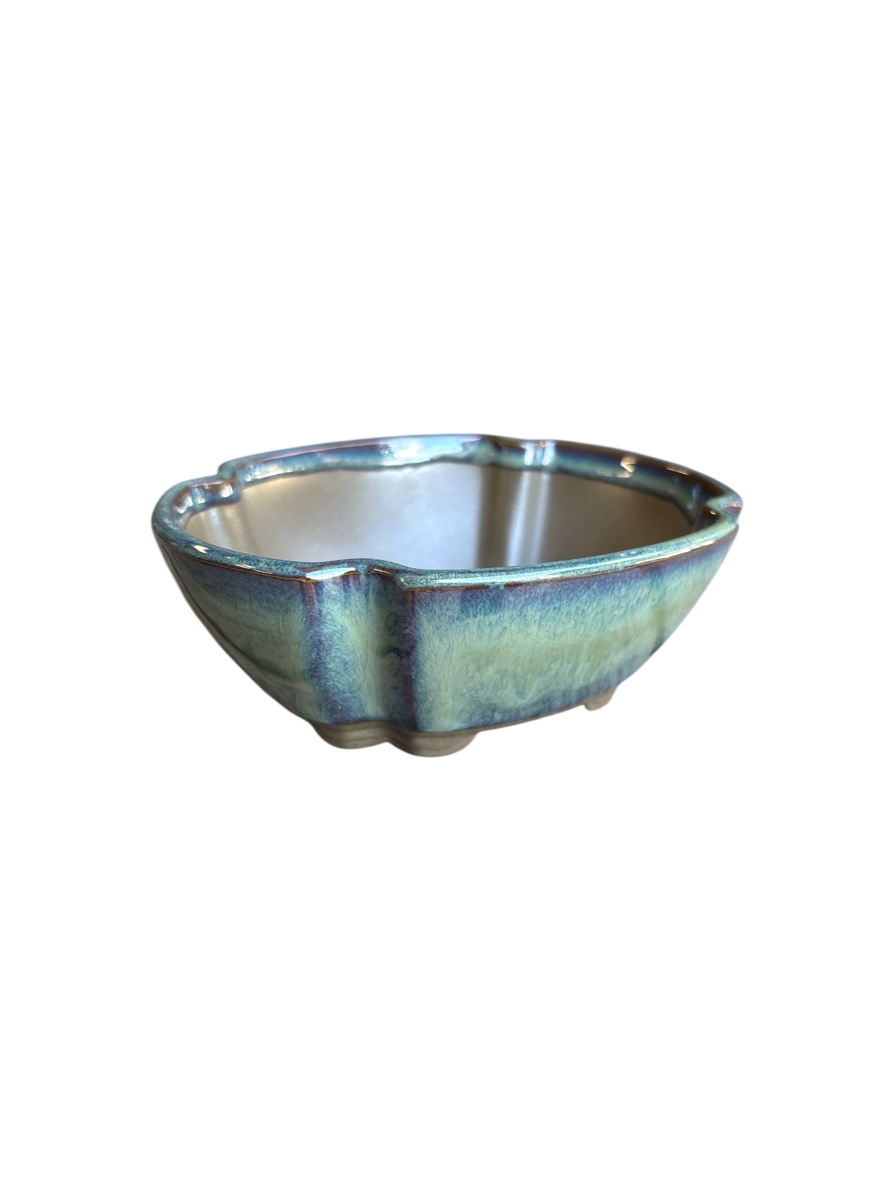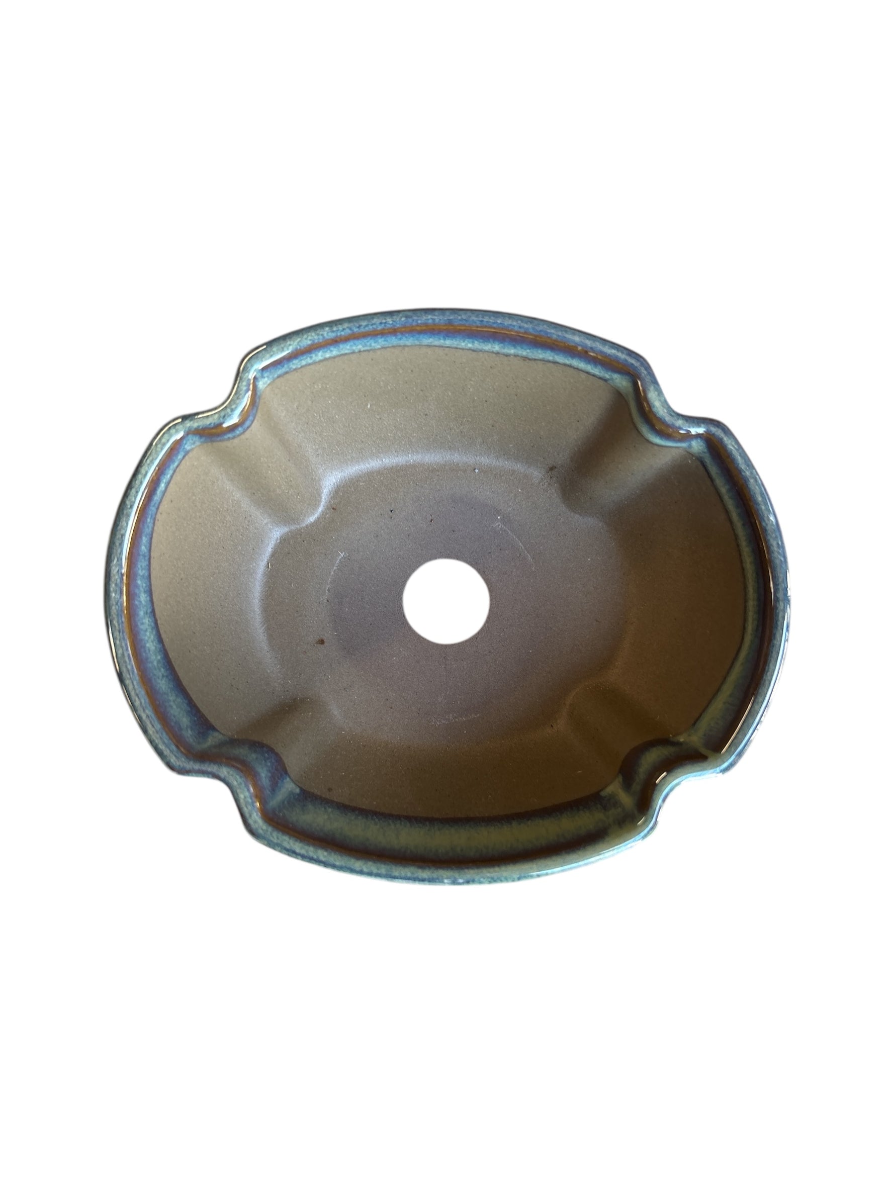 Pot pour bonsaï émaillé de couleur vert bleuté.