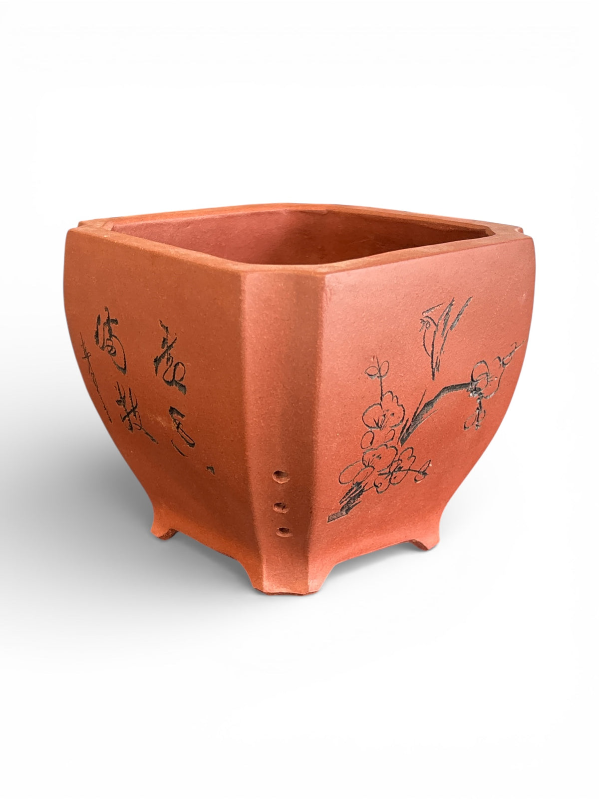 Pot semi-cascade non émaillé carré pour bonsaï.