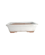 Pot bonsaï rectangulaire, émaillé de couleur blanc.