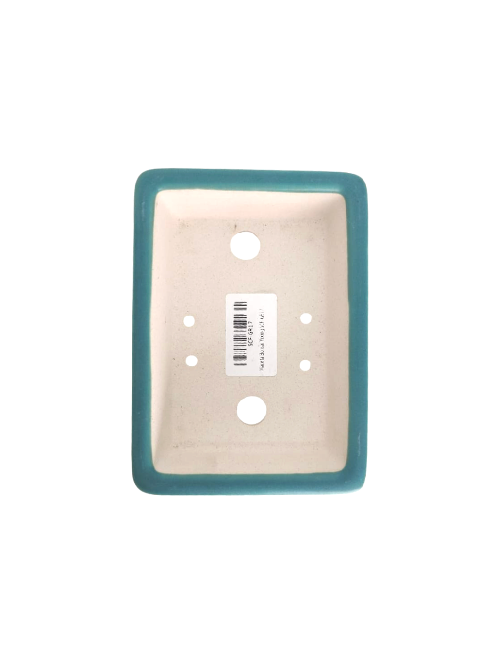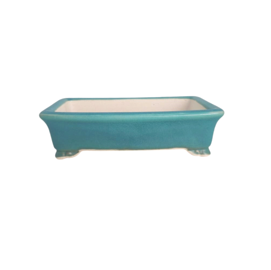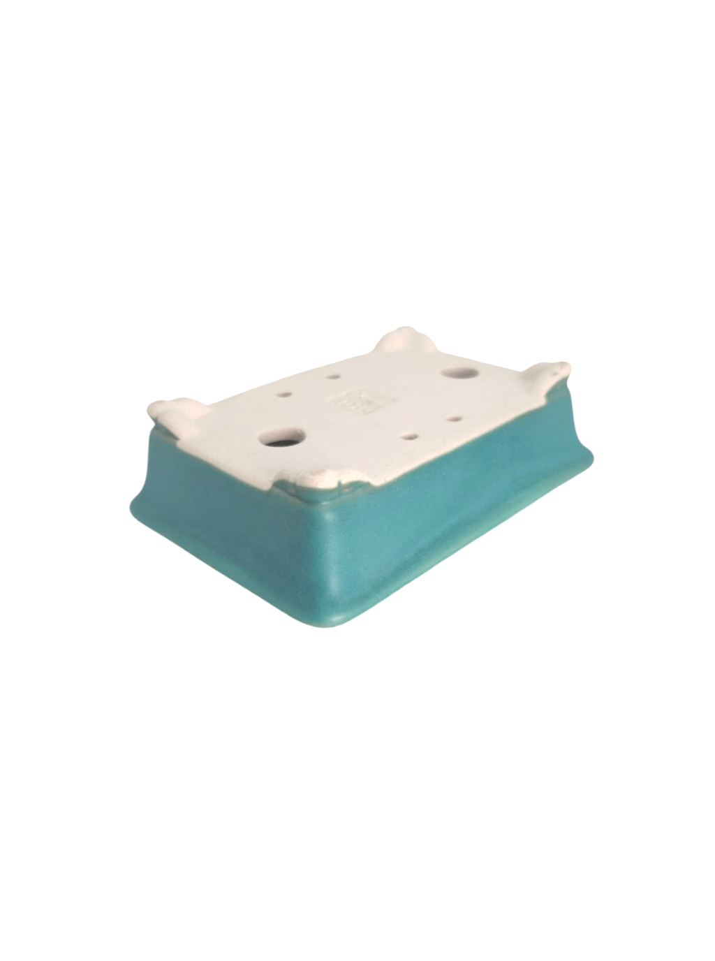 Pot bonsaï rectangulaire, émaillé de couleur vert turquoise, finition mat.