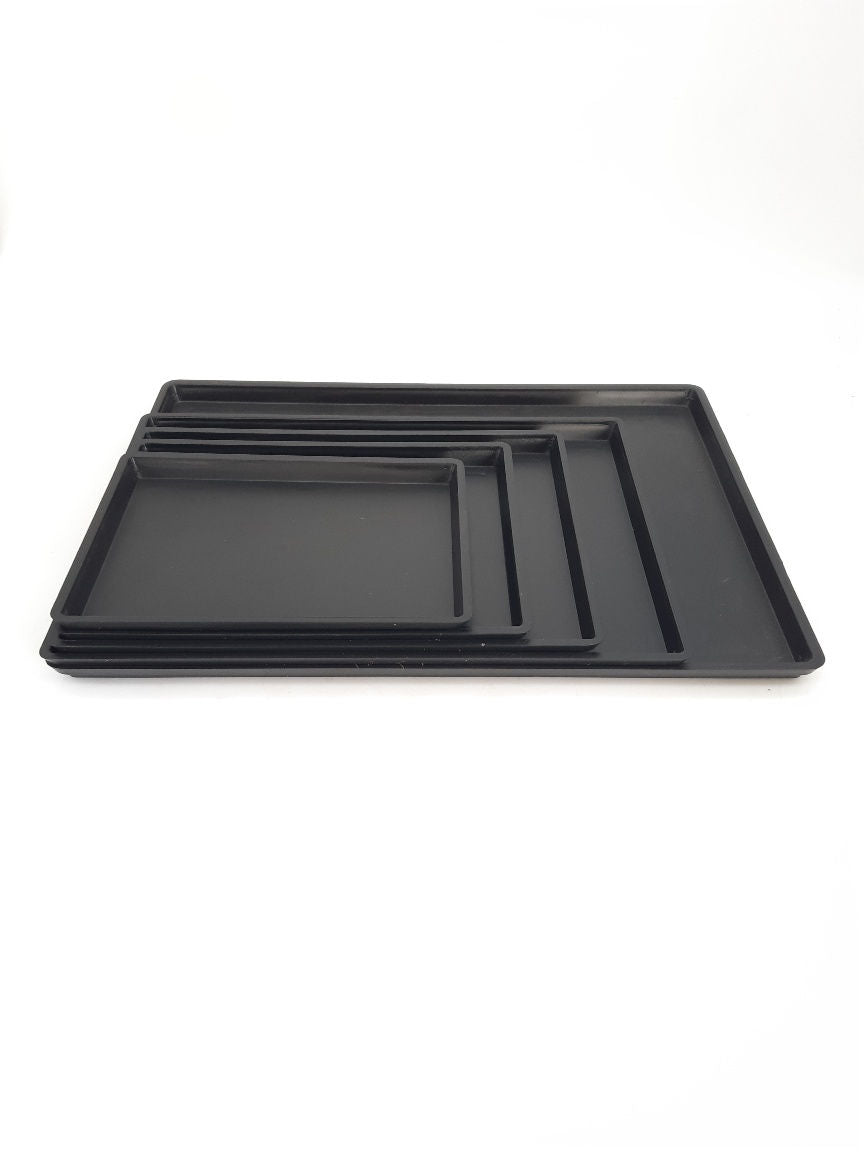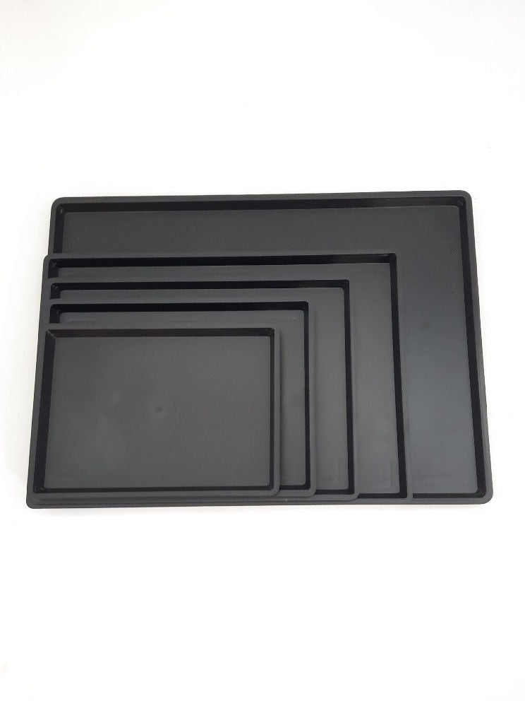 Plateaux en plastique fabriqués au Japon, de couleur noire.
