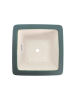 Pot bonsaï carré, émaillé de couleur vert foncé, finition mat.