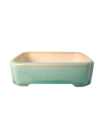 Pot bonsaï rectangulaire, émaillé de couleur vert turquoise.