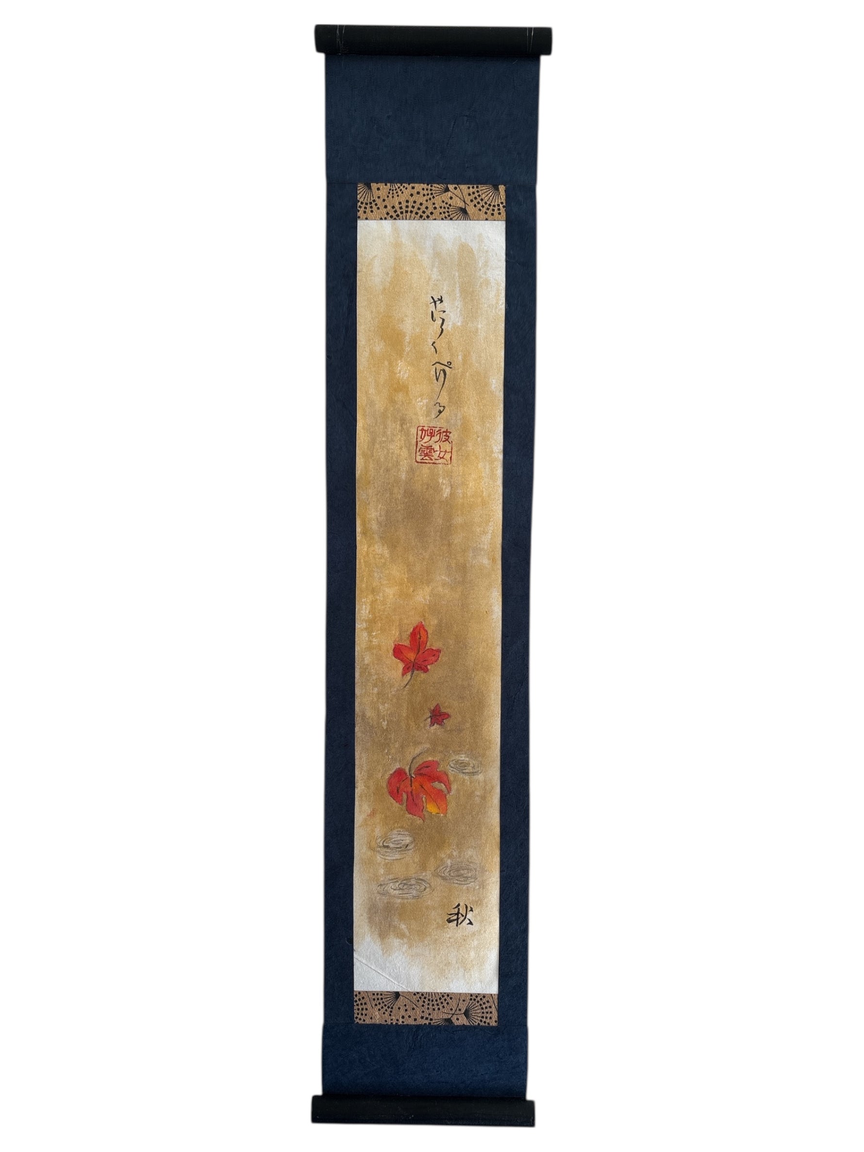 Sumi-e (peinture à l'encre) et aquarelle représentant les feuilles du tombent à l'automne.