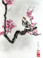 Sumi-e "L'oiseau sur son cerisier"
